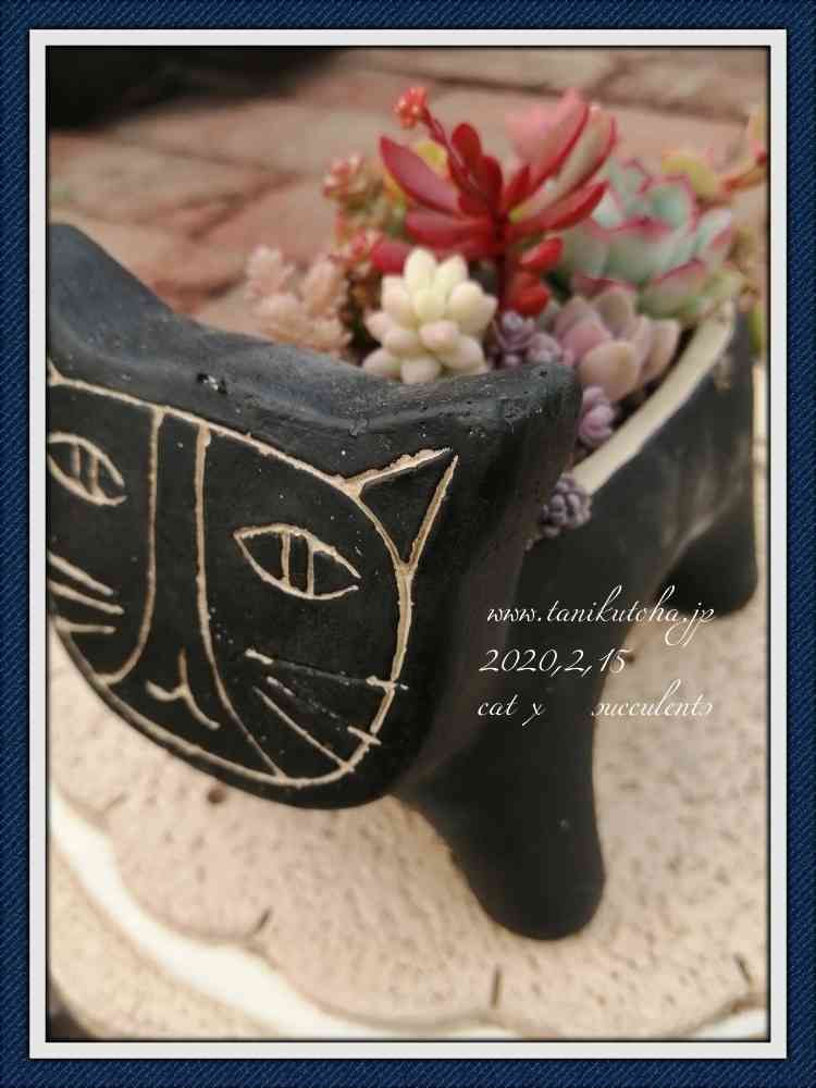 #黒猫#黒猫と多肉植物