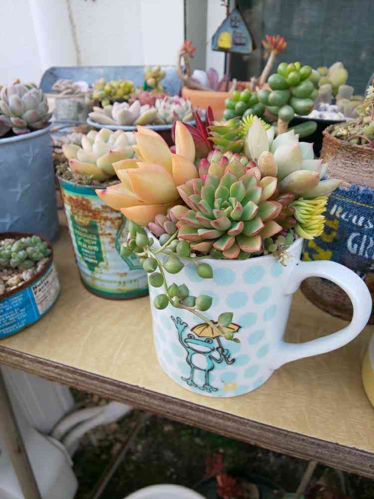 可愛いカップ☕🐸に、可愛い寄せ植えヾ(*´∇`*)ノ❤️
