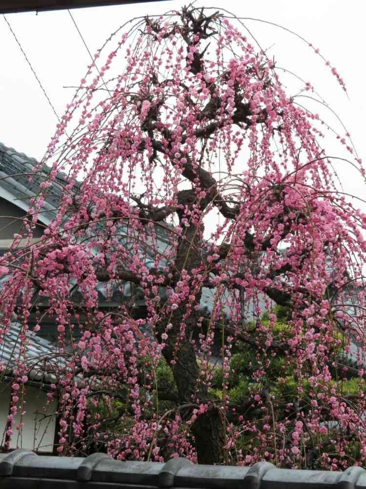 散策途中、ある農家の立派な枝垂れ紅梅が見頃を迎えていました。
