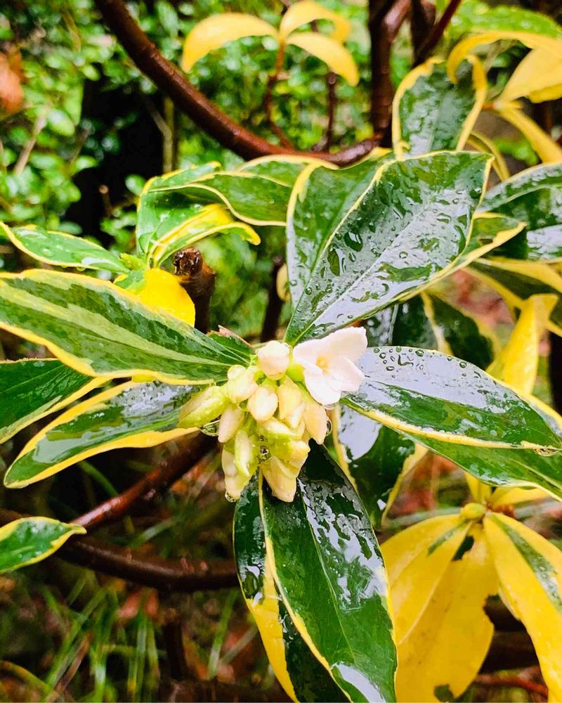 白い沈丁花が雨に濡れて、綺麗ですね😄