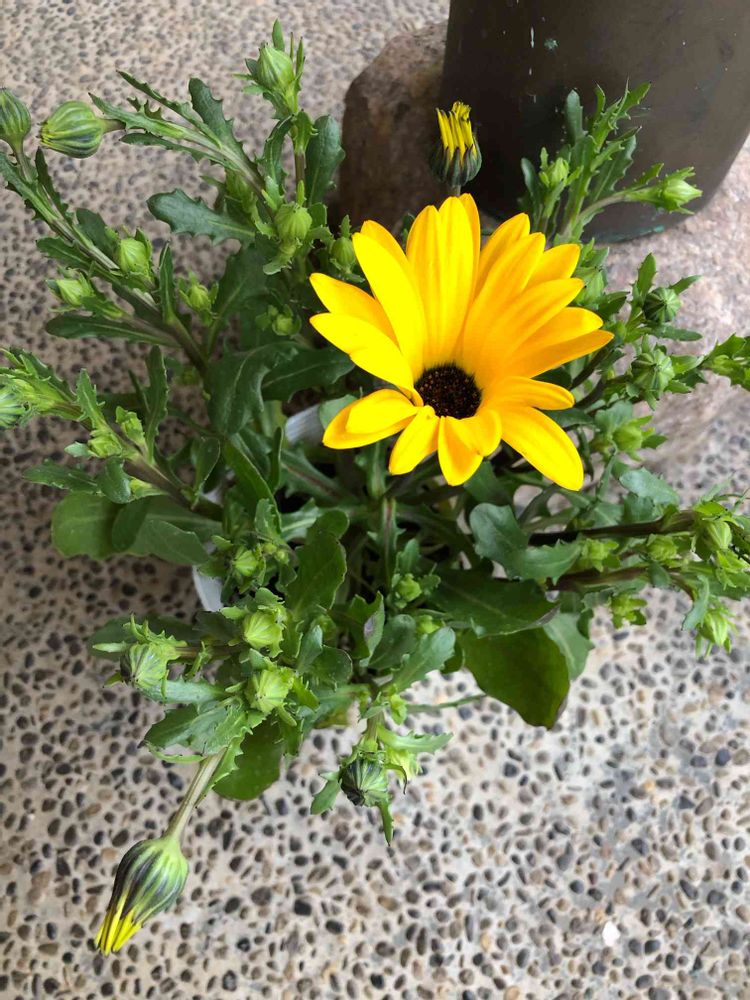 今日はあいにくのお天気、こんな日は元気が出るお花🌼ディモルフォセカ🌱