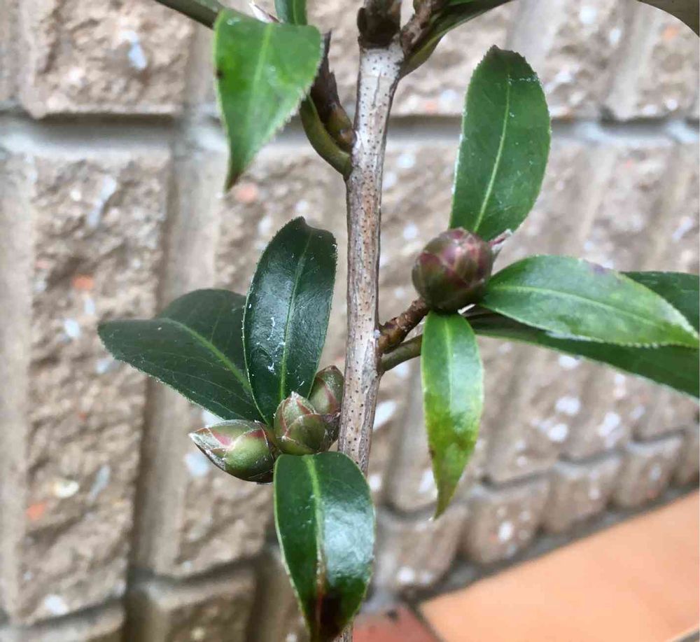 2018年12月に葉牡丹か光明寺紅葉を買おうとお花屋さんに行ったのにこちらに目が行き連れて帰って来ちゃった黒椿🌸蕾が膨らんで来ました😆