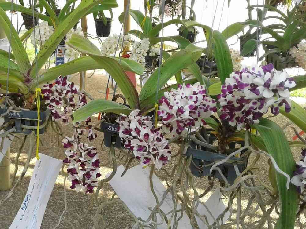 先週末のチェンマイフラワーフェスティバルで見かけた洋蘭のアスコセントラムです。タイの洋蘭では一番多く見られるアスコセンダはこれの改良種だそうです。花は小さいですが、ジンチョウゲに似た独特の香りがあって、アスコセンダとはまた違った味わいがあります。