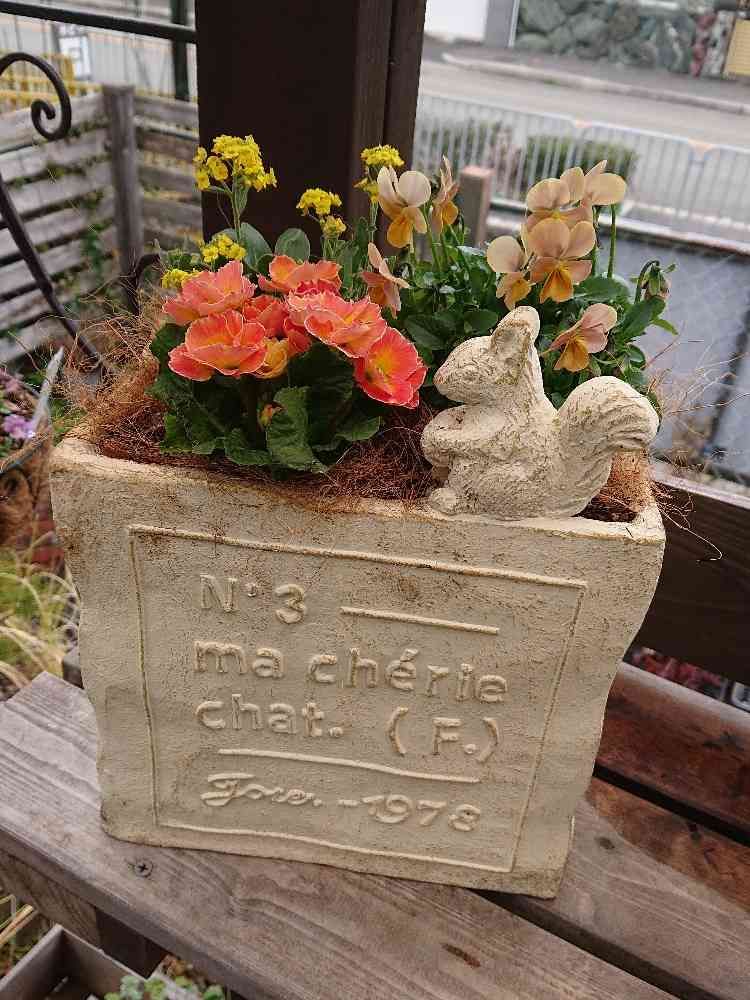 #夢と緑を運ぶ店ホピー#有限会社鈴蘭園#神戸市北区#園芸店#花屋#ガーデニング#花のある暮らし#植物のある暮らし#花好きと繋がりたい#神戸から発信#当店お勧め#寄せ植え#栄養系ビオラ#チュニチュニ・ハニーマスタード#アリッサム・サクサティレ#サミット#個人育種プリムラジュリアン#リスのグラスファイバーが可愛い#春色 @ ホピー鈴蘭園