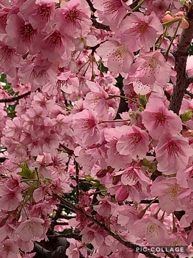 河津桜、色も普通の桜より濃いんですね。もう満開なんですね。私の家では以前チェリー🍒がなるのを植えていましたが甘いからかな、虫にかじられたり、中に虫が入り込んで木をからしてしまいました。でも、わが家の記念樹なので枝は切りましたが太い幹の方は残しています。でももう、葉もでなくなりました。ちょっと寂しいですね。