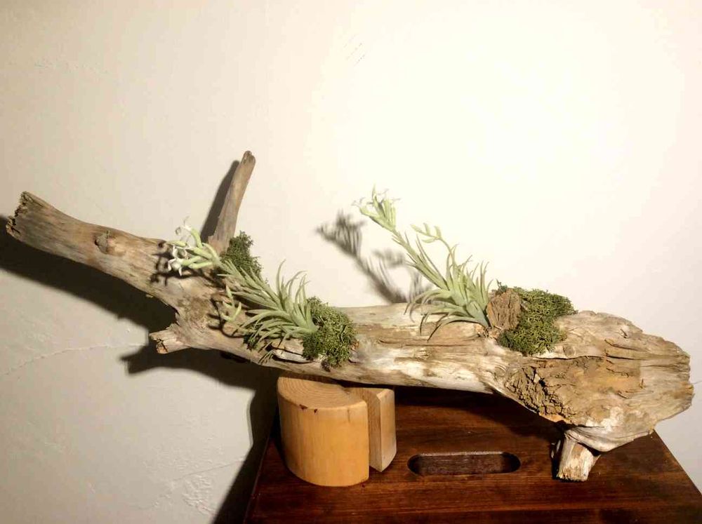 海で拾った流木にピートモスを接着してフェイクグリーンを刺してオリジナルインテリアの完成です。---------------製作費1000円位