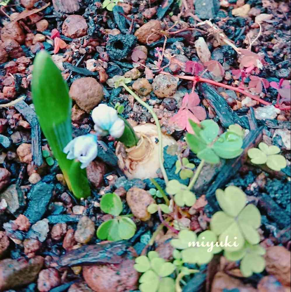 今年も出ましたね、昨年のみゆきさんの投稿を覚えています。うちのは芽が土から出てる位です。青と白のひと昔使っていた歯磨き粉の様な綺麗な子。プスキニアもしくはプシュキニアとの記述が多いですがサンスベリアとサンセベリアとの違いみたく、元が日本語で無いから自分の好きな呼び方で良しとしています。😄