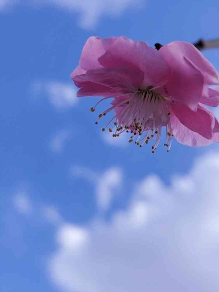 空の青さと梅のピンクで、どちらも引き立てあっている様ですね😃