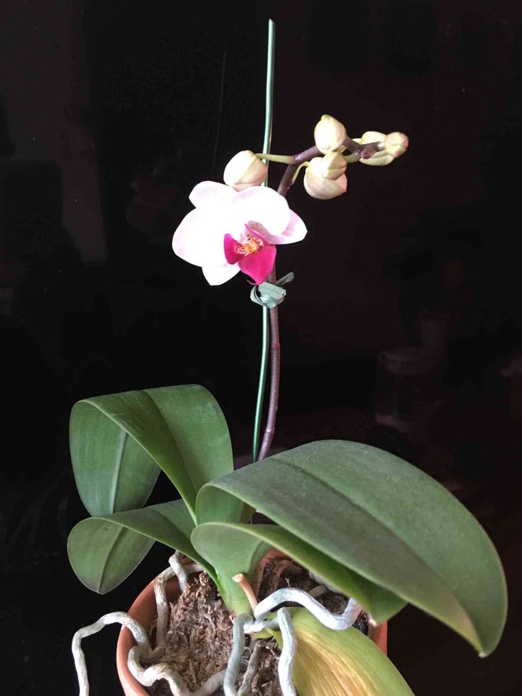 もらってきた時は、お祝いものだったので、たくさんの花が咲いていた痕跡がありました。我が家に来てからは、水苔の交換などはたまにするのですが、花数は7〜8輪がせいぜいです。