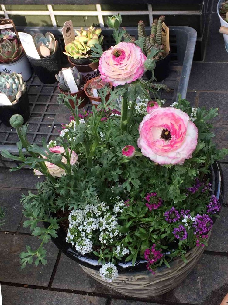 アリッサムとラナンキュラスの寄せ植え❁.*・゚