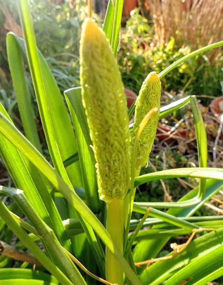 ブルビネラのつぼみも出てきました。これは多分黄色です。去年まではオレンジ色も咲いたけれど、今年は出てこないみたい(TT)