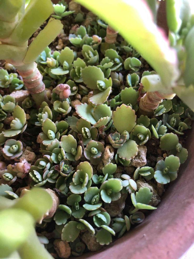 霜でやられた子宝弁慶草の葉っぱを整理したら、中から凄いものが!オーノー