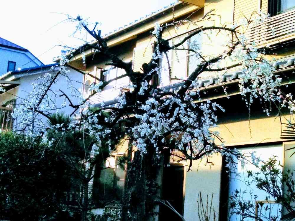 散策の通り道で見つけた、お宅の垂れ白梅です。見事でした。