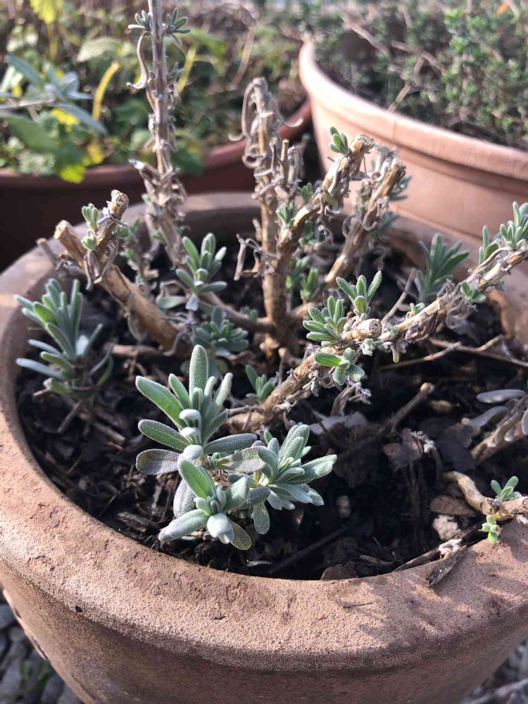 ラベンダーの剪定、新芽が見えると安心しますよね☺️新芽を確認してから、もうちょっと切ろうかなぐらいがいいんですね💫