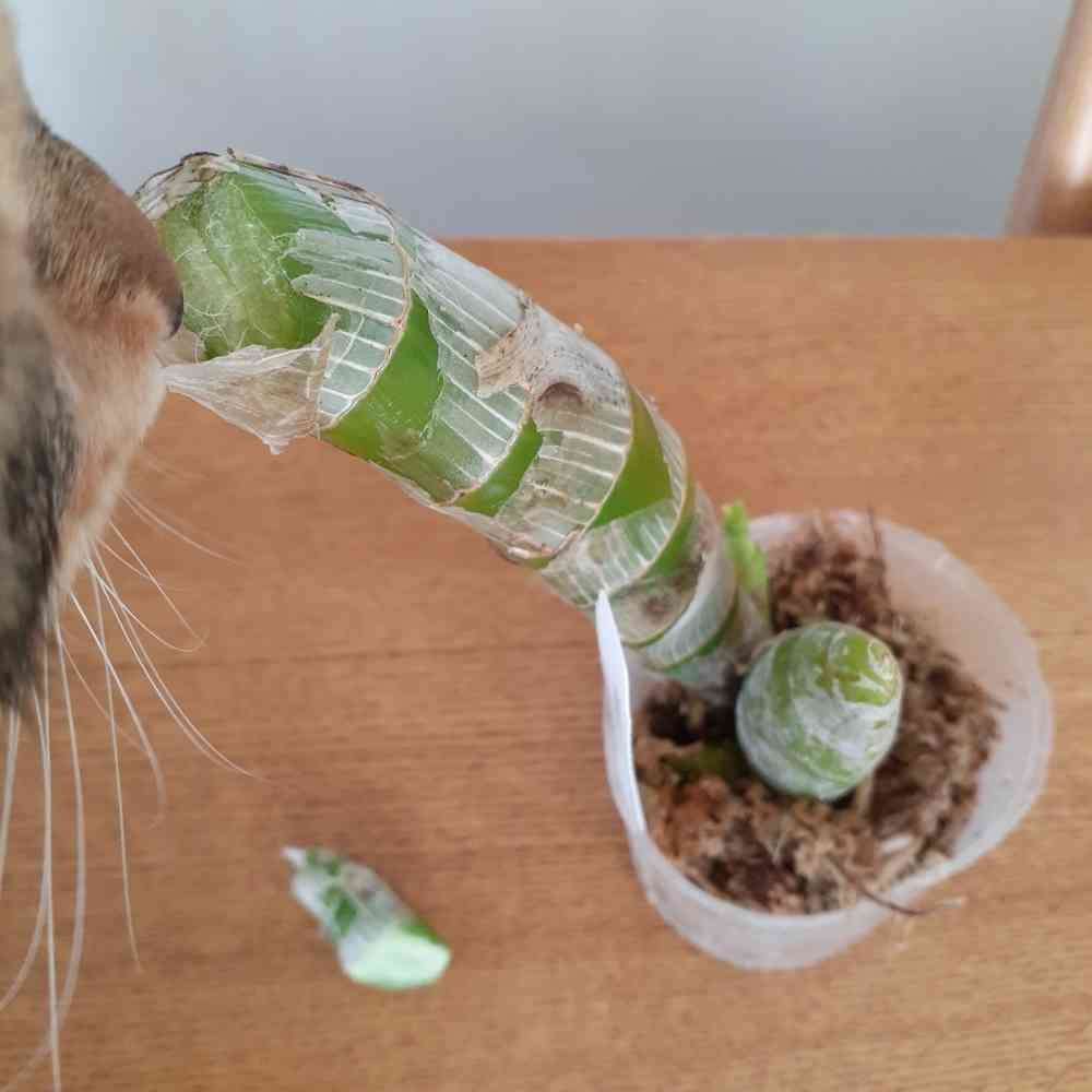 猫ちゃんアルアルですね。折られた茎をコンポストの上に置いておくと脇芽が出てくるかも❣️