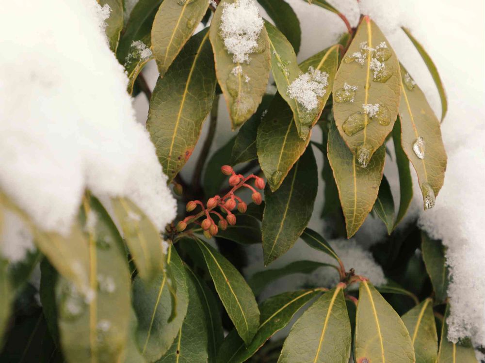 アセビが凍っちゃいそうですね。雪とアセビも風流ですね✨広島はもう大分開いてきました。