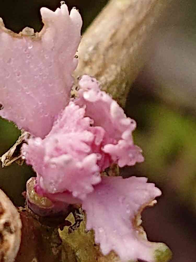 それからほったらかしで、地面にミョーンとワケわからない状態の茎が刺さっている状態でしたが、よく見ると何やらピンクのものが🌱👀⤴️
