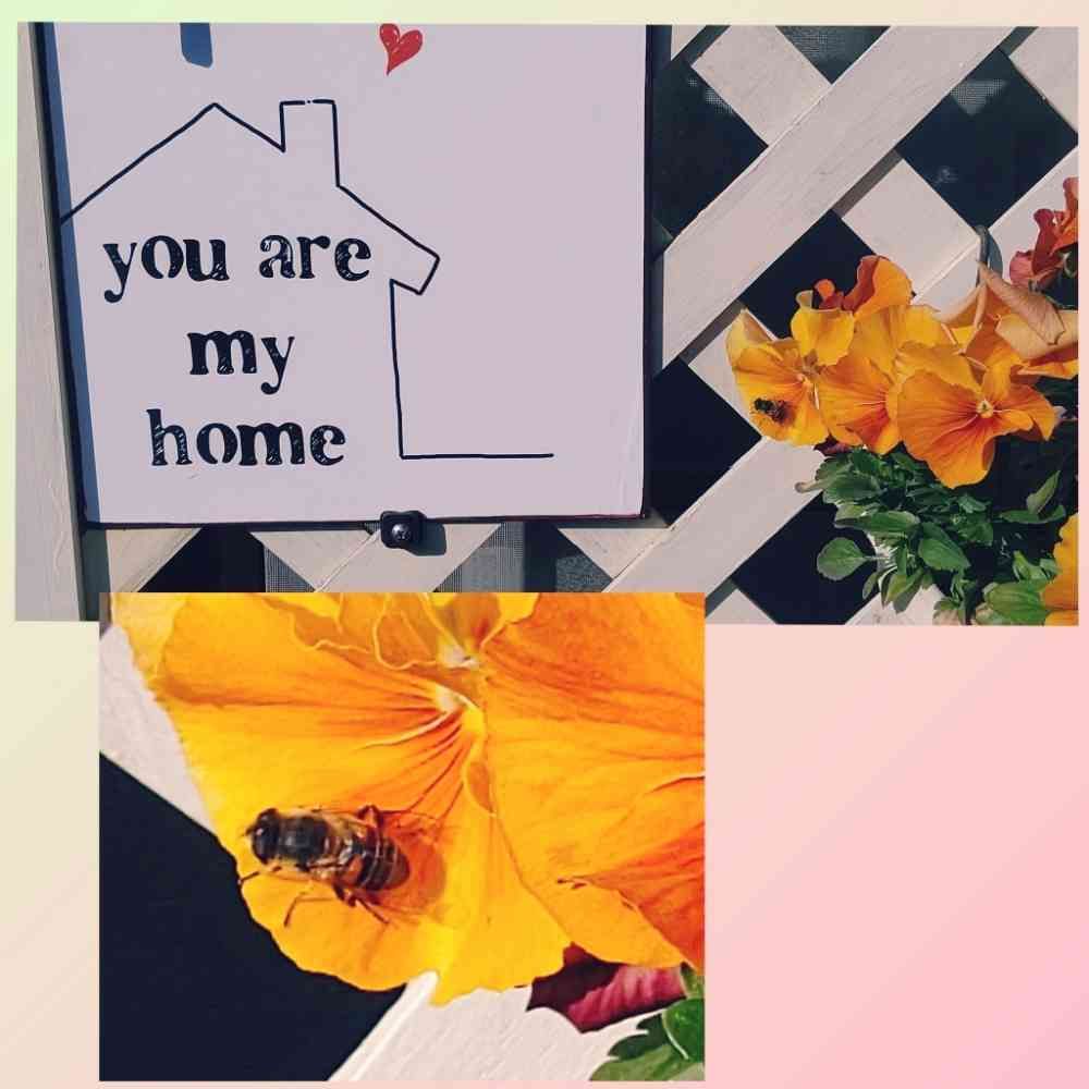 玄関の所にあるパンジーに、蜂が✨ まだ珍しいから、春が来たと嬉しく思う😊