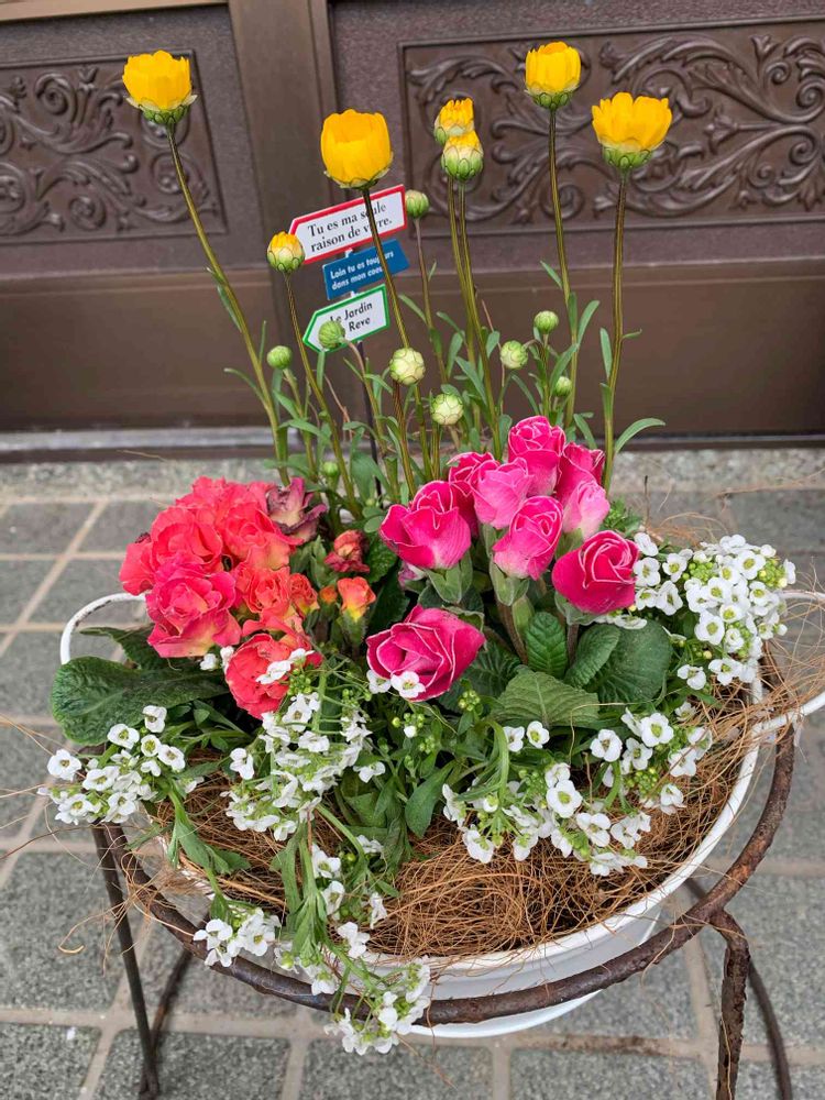 小春日和だったので 春の寄せ植えを
