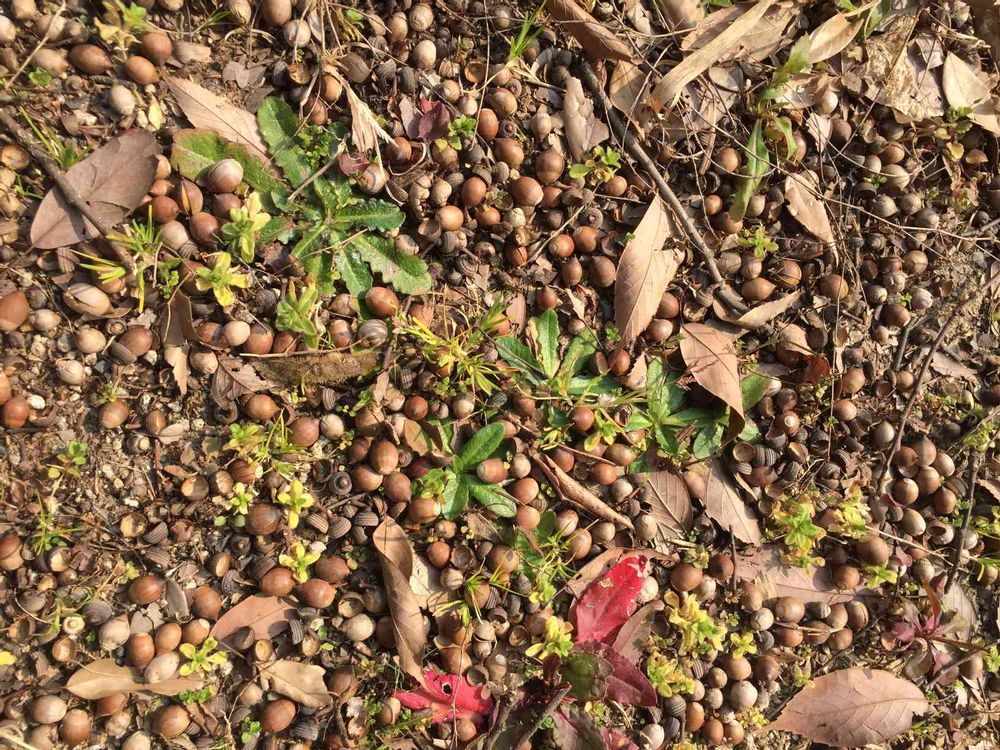 歩くとパツパツザクザクっとどんぐりがボコボコ割れる音がします。