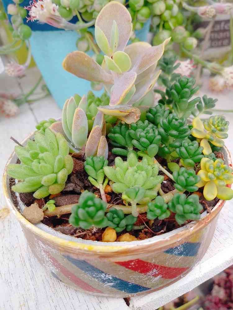 貰った多肉ちゃんだけで 寄せ植えしたので セダムがもりもりなってくれるのを楽しみにしてるね~(๑´ლ`๑)フフ♡