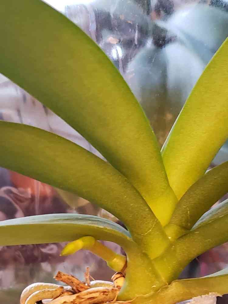 この株は花終わり売れ残り株でゲットしたものだから、どんな花が咲くのか謎😆大輪胡蝶蘭の株ほどではないものの、葉っぱが結構大きめだからどんなお花か楽しみだなぁ🤓🌿