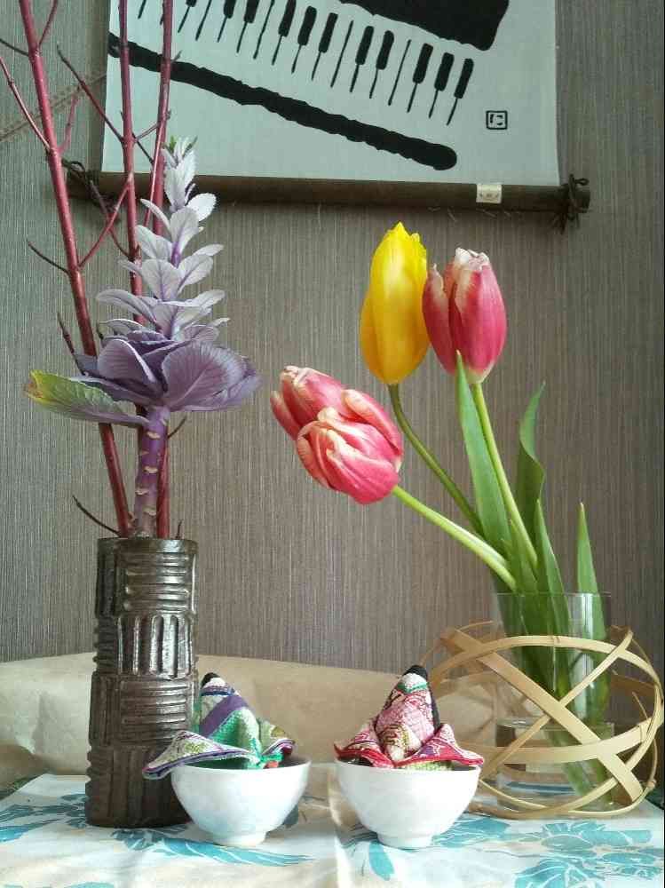 まろみさんのチューリップ,葉牡丹,珊瑚水木の投稿画像