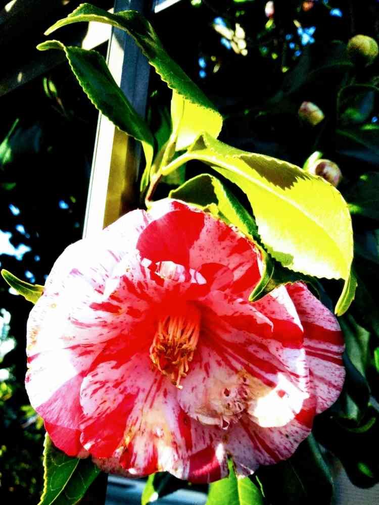 散策の途中、 塀の中の椿を見つけました。