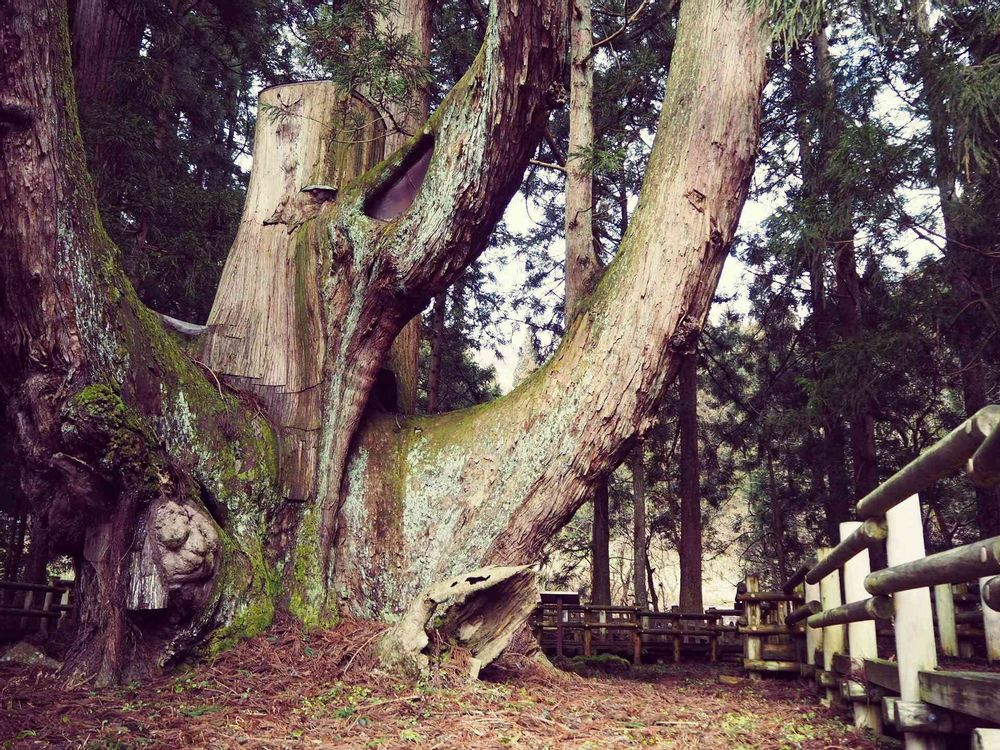 中央の幹は台風で折れてしまっていますがコーティング?がしてありそこから枯れないよう手当がしてありました。一番太いので雷で折れる前の姿を見てみたかったなぁ…って思いました。