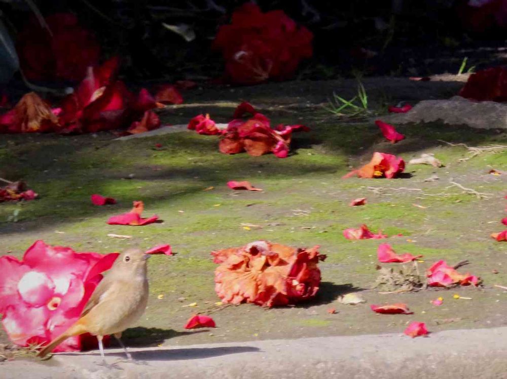 花と虫と風と空とさんの椿 南蛮紅,ジョウビタキ ♀,キュンキュン乙女倶楽部の投稿画像