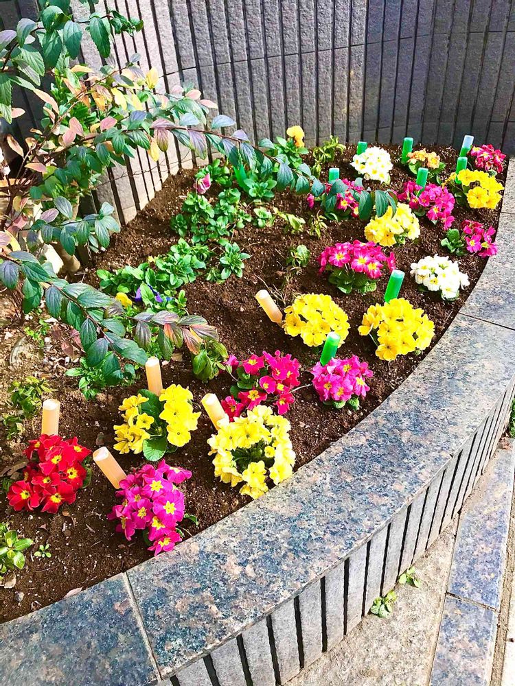 綺麗な土が入れられた花壇に、行き交う方々ににっこり微笑む花々🌼*・💮🌿🌺🌿🏵️🌿🌼*・💮🌿🌺🌿🏵️