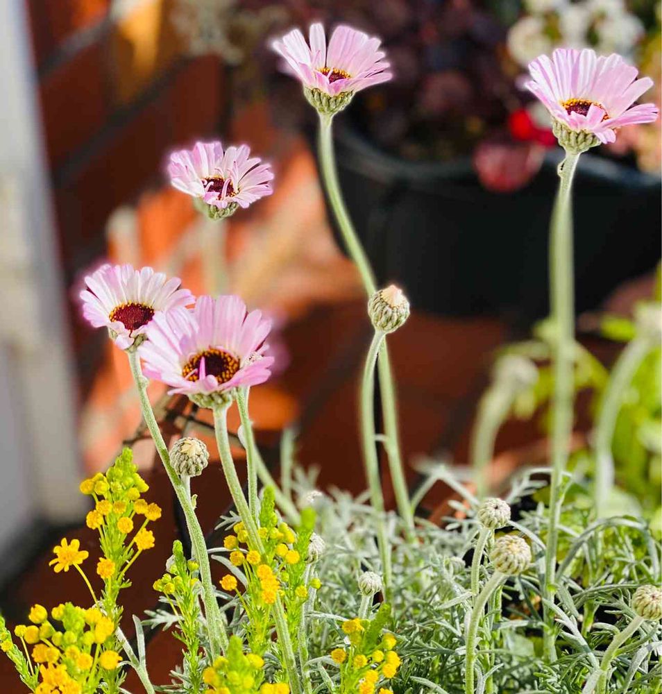 ピンクのローダンセマムと黄色のゴールデンクラッカー、春を感じる可愛いpicですね😍🌸