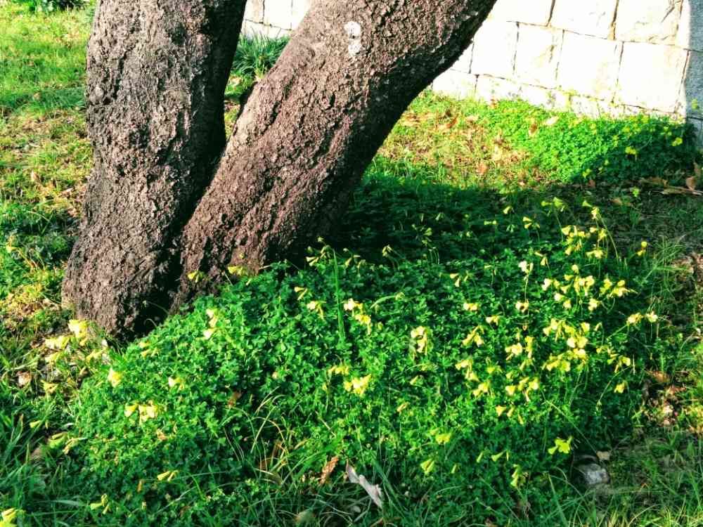 散策中に、水元公園の桜堤の桜🌸の根元に、可愛い黄色いお花が、咲いていました。