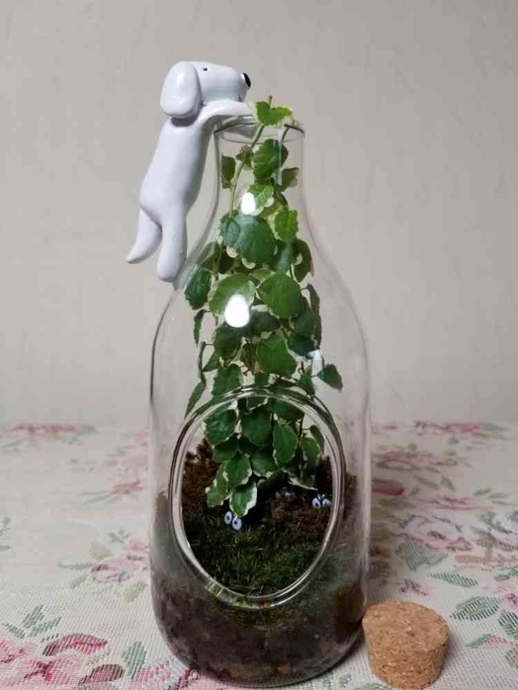 ガラスのボトルと、中のグリーンが