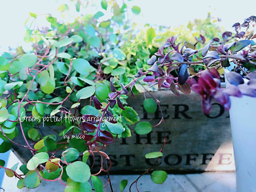 グリーンの寄せ植えにしてベランダへ♡︎ʾʾ