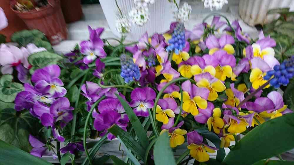 バルコニー/ベランダ,ムスカリ,ビオラの投稿画像