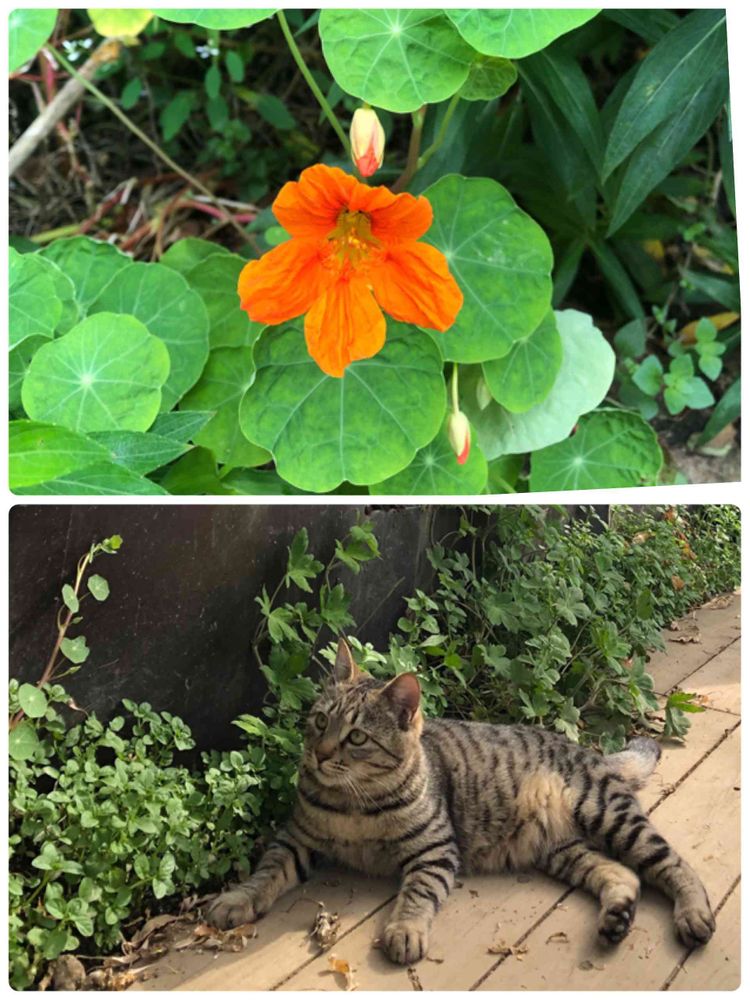 てもちぶたさんのナスタチウム,コラボにゃんの投稿画像
