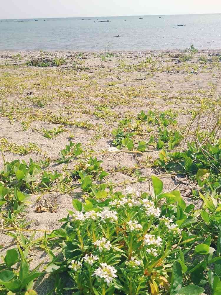 沖縄県中城村北浜の浜辺にさくらそう科のハマボッスが群生していました。