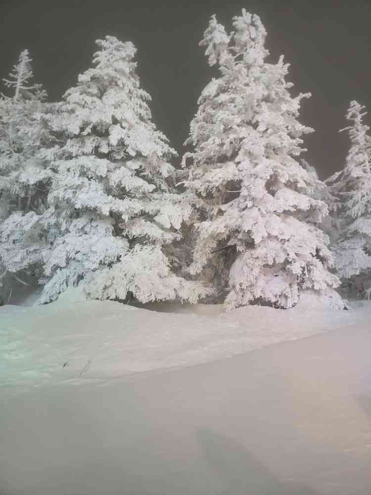 吹雪いていましたけど雪上車で樹氷のライトアップを見ました。