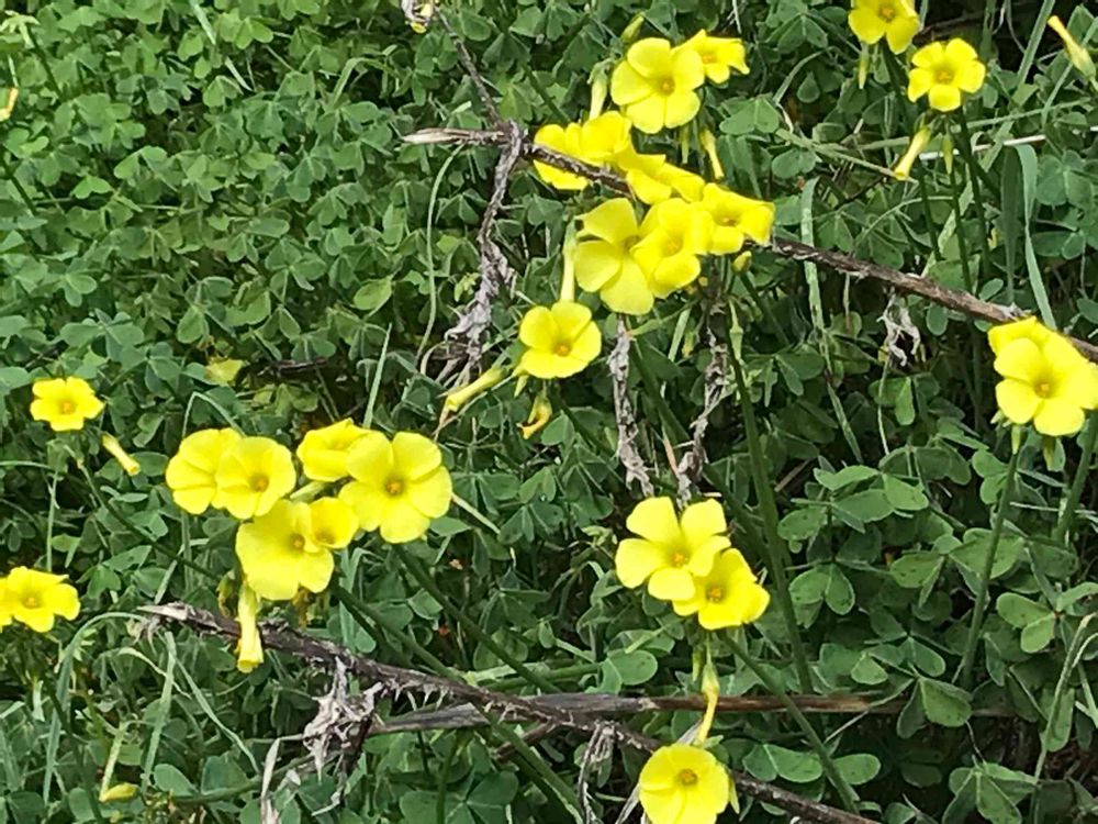 Almaden parkにて。日当たりの良い斜面に明るい黄色の花がまとまって咲いて、とても目立っていました。カリフォルニア原産の野草かと思いきや、帰化したオキザリスと判明。