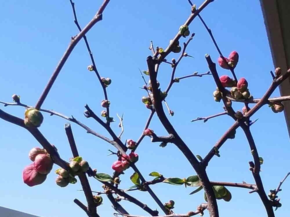 ボケの花、蕾赤く膨らんできました🎶