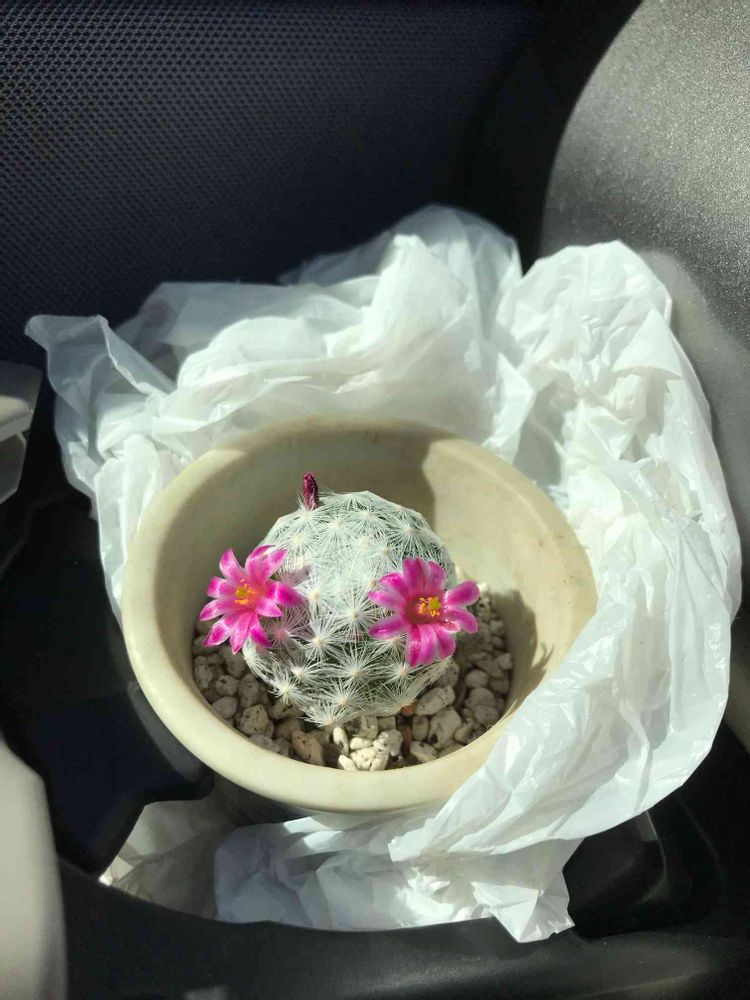 車🚗のドリンク🥤ホルダーが大きすぎるのでビニール袋の上に置いて日に当ててます。やっぱお日様好きなんだね🌞