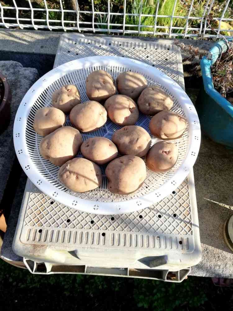 ジャガイモ🥔昨日は芽を均等な数になる様に半分に切って、灰を付けたので、また1週間くらい日当たりのよい場所で、乾燥させてから、ポットで芽出ししてから、来月の終わりくらいに植え付けです😺