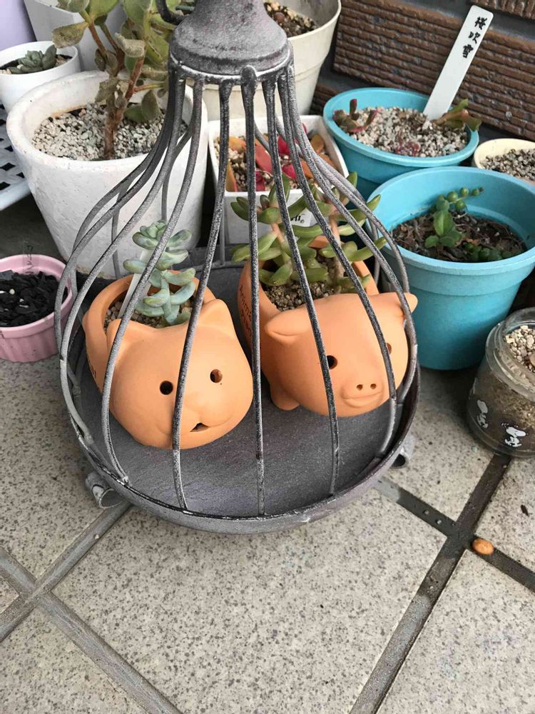 さっそく小鳥が啄ばみに来ていたので、植物を守るためにカゴで防御。