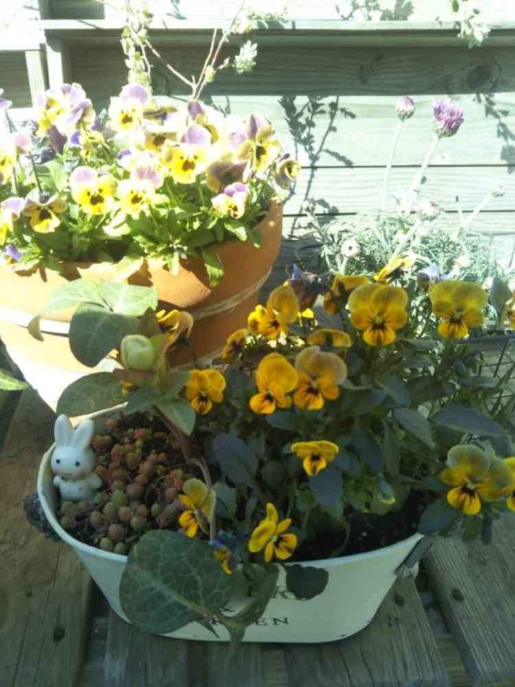 自然交配とタグに書いてあったビオラと緑のクリスマスローズ。