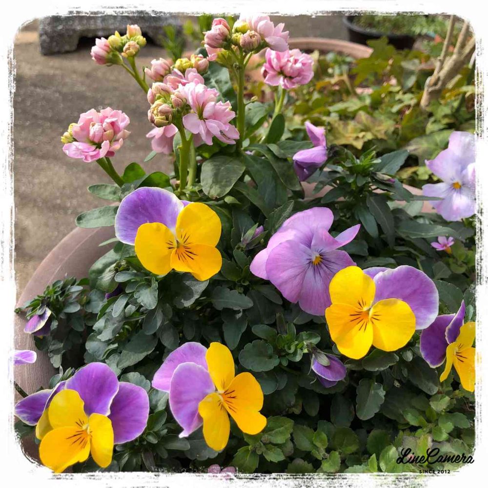 可愛いビオラさんと賑やかになってきたピンクのストックさん🌸