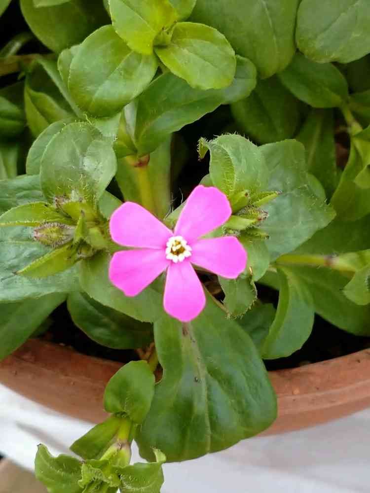 先月、知り合いから、頂いた苗から花が咲きました🌼"サフイニア"かと思い込んでいたら全然違いました(*/□\*)シレネでした☺️