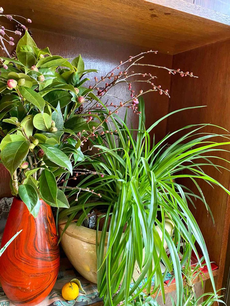 前picの紅梅は、家の玄関に飾った梅の枝に一輪開花した🌸です✨
