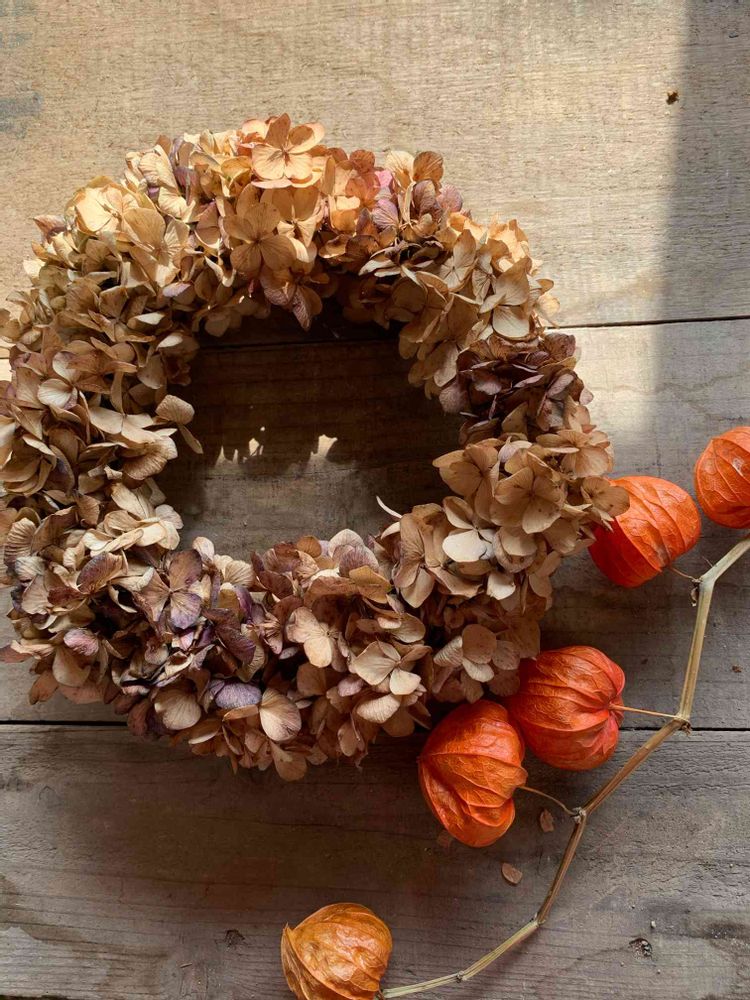 詳しくはみどりのまとめ➰秋色アジサイで作る簡単リースをご覧下さい😌