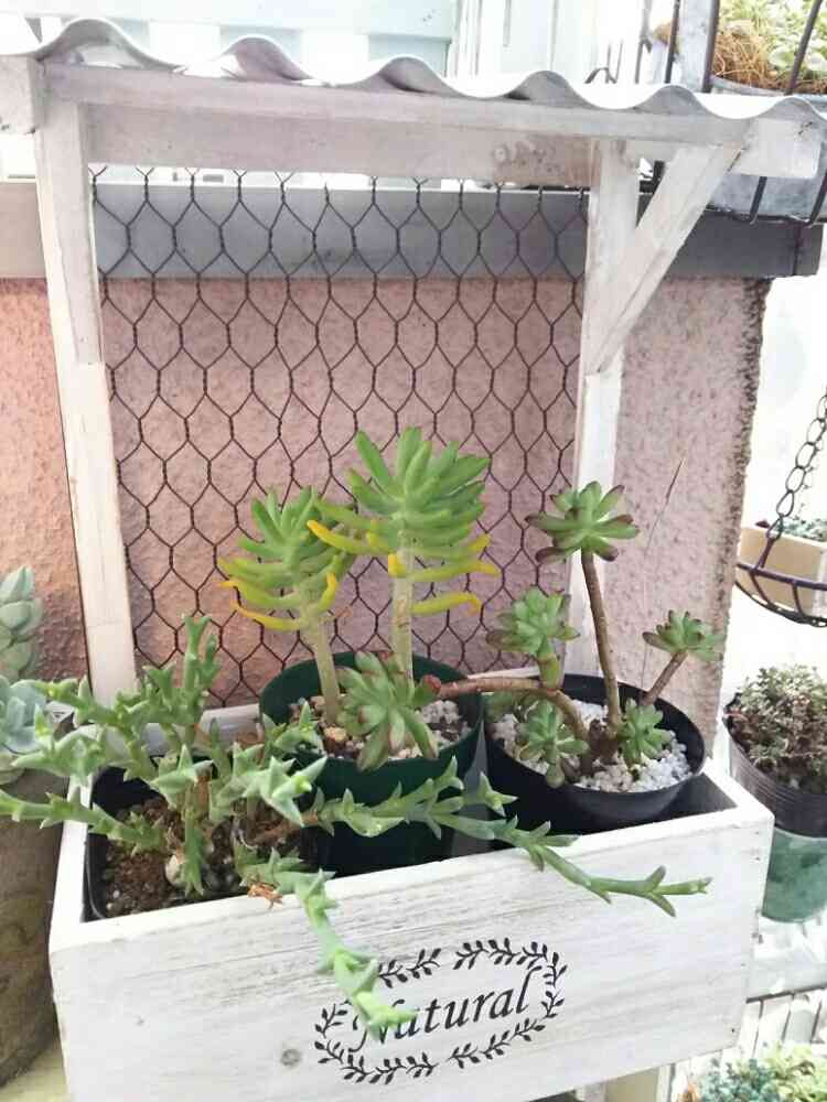 ベランダ掃除して、先週からgetしてたトタン板付き木箱にお気に入り😍達をINしました💓💓